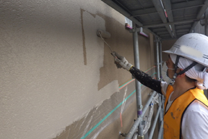 大きく関わる工事となります。 下地処理を完了したのち塗膜厚さを確保し ムラなく均一に塗装を施すよう管理します。仕上がりのイメージを確認する 為、試験施工やサンプルの提出をしお客様の確認ののち仕上げを致します。 |